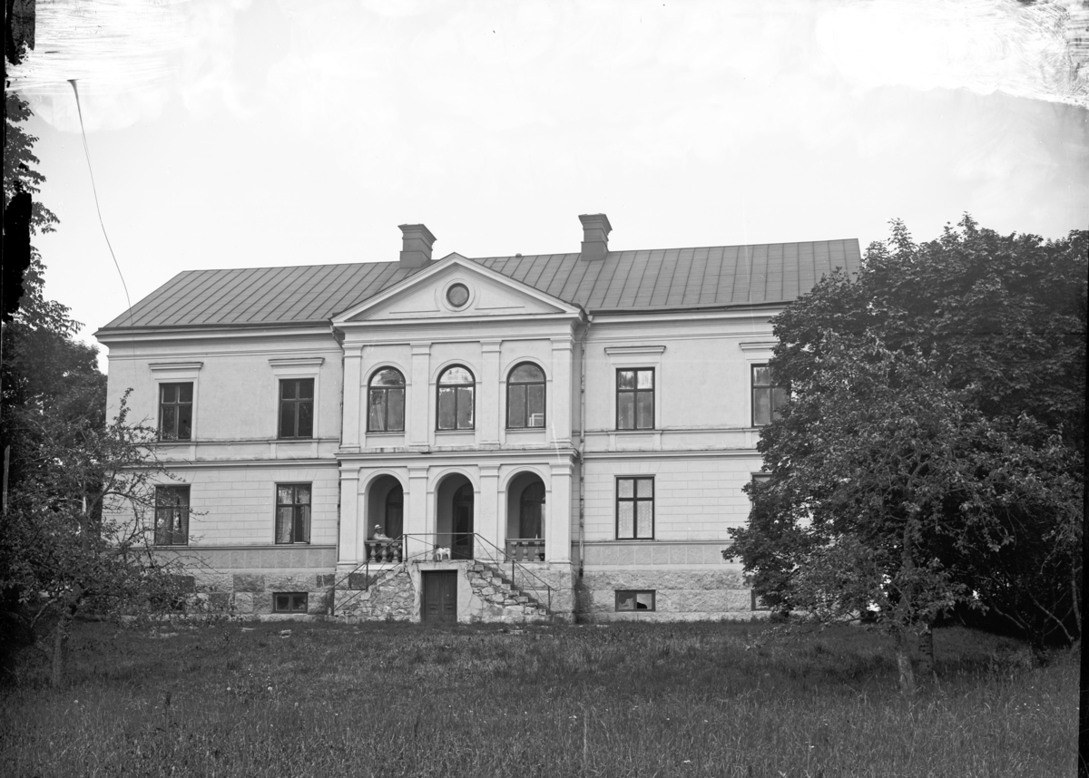 Skälby gård, man med hund, Bred socken, Uppland, vy från väster