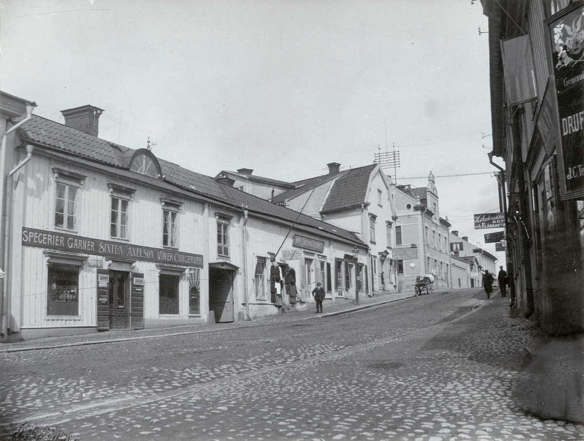 Kungsgatan 16-18, Apotekarbacken, Enköping, sedd från söder, ca 1907.