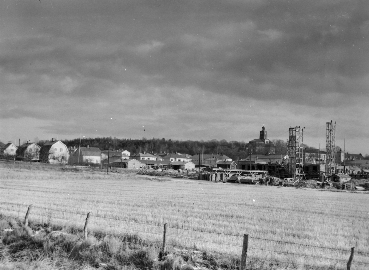 Enköping, kvarteren Beckasinen och Hägern, från hamnspåret, mot nordost