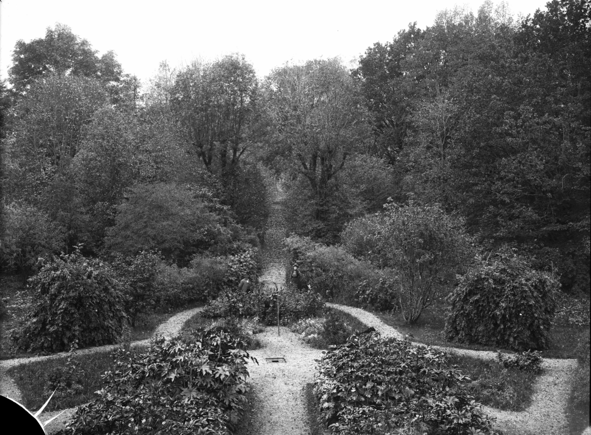 Man och kvinna i park, Strömsta säteri, Teda socken, Uppland, ev. 4 oktober 1905