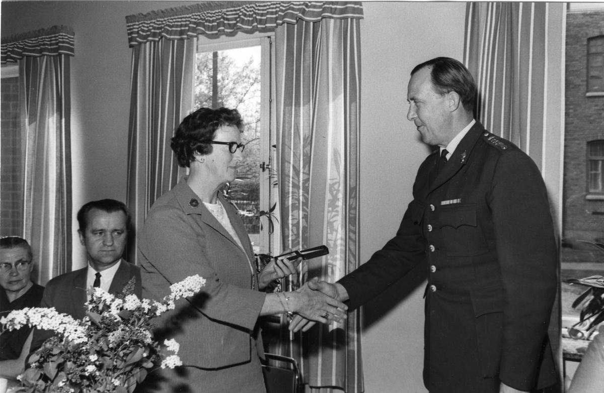 Avtackning av fru Carlsson (pension) marketenteriet, A6.