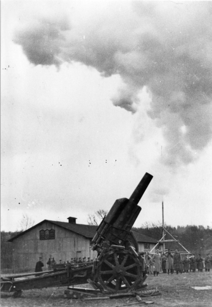 Haubits m/1917. 21 cm. Lösskjutning, vid A 6. Fältskjutning.
