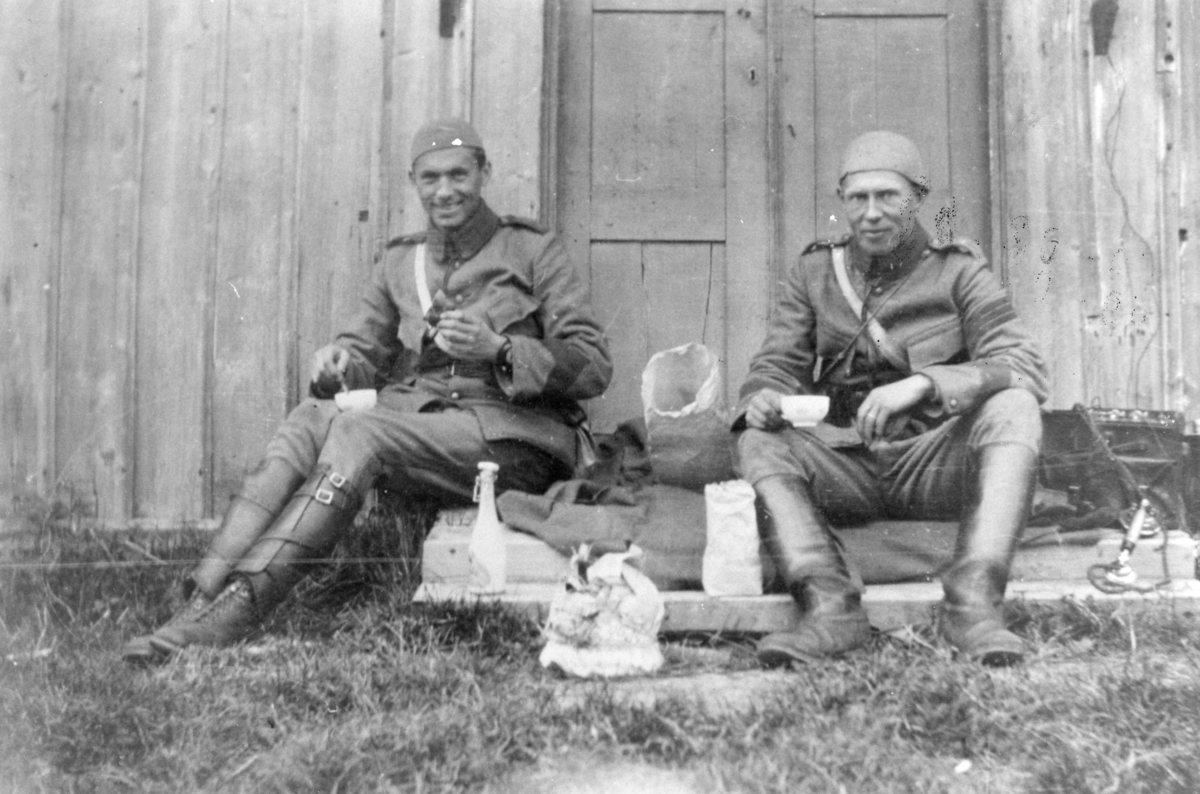 Titel: Kaffepaus under signalövningar vid Björneberg. A 6. Namn se notering.