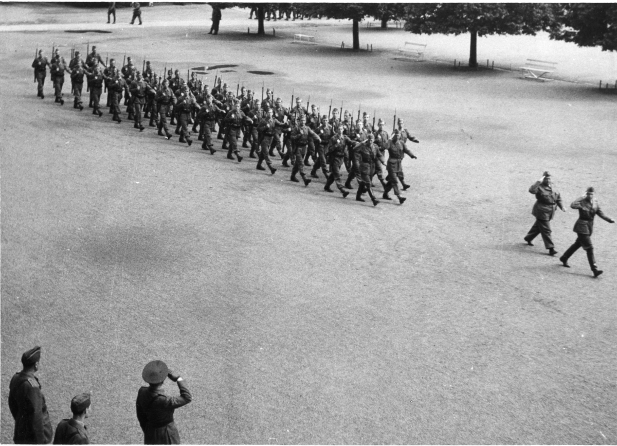 Förbimarsch, 4.Batt. A 6. Löjtnant Cahné och styckjunkare Gylfe.