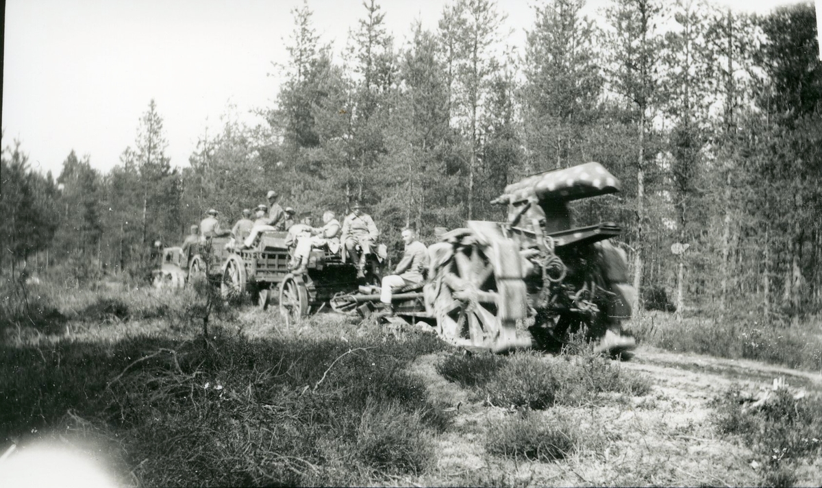 Haubits m/1917. 21 cm. Traktordragen lavett o amm/hjulbältesvagn.