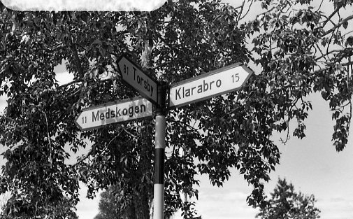 Vägvisare. Torsby 81, Medskogen 11, Klarabro 15.