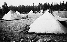 Tält m/äldre. A 6 övningsdivision, på övningsfältet i Skövde.