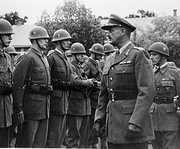 Lundqvist, överste, A 6, tar emot regementet för första gången.