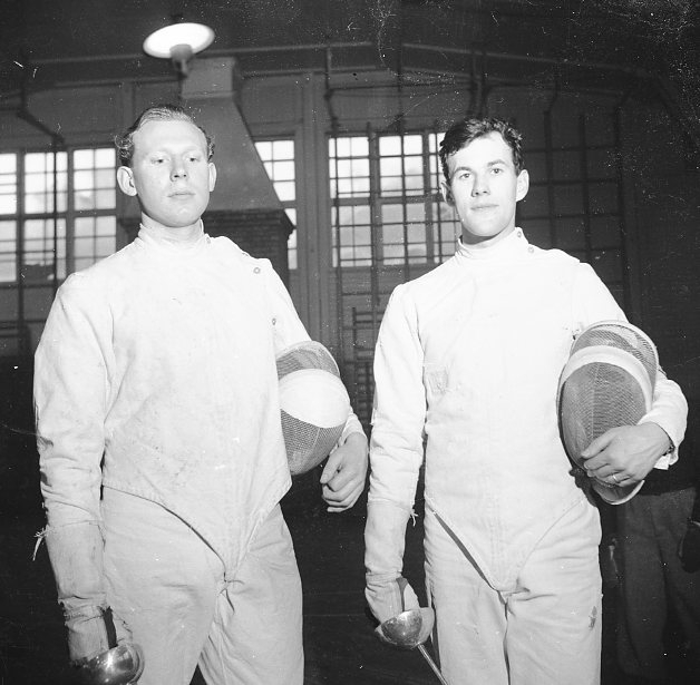 Gärdin, Gösta, A 6, till höger. Fäktning i gymnastiksalen.