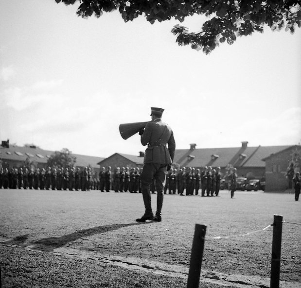 Divsionsexercis på kaserngården. Henrik Lublin, chef 2. div.