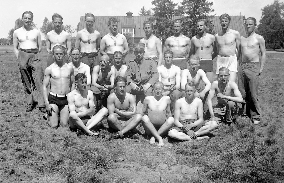 Titel: Badpojkar. Erik Sandstedt längst fram tvåa från vänster.