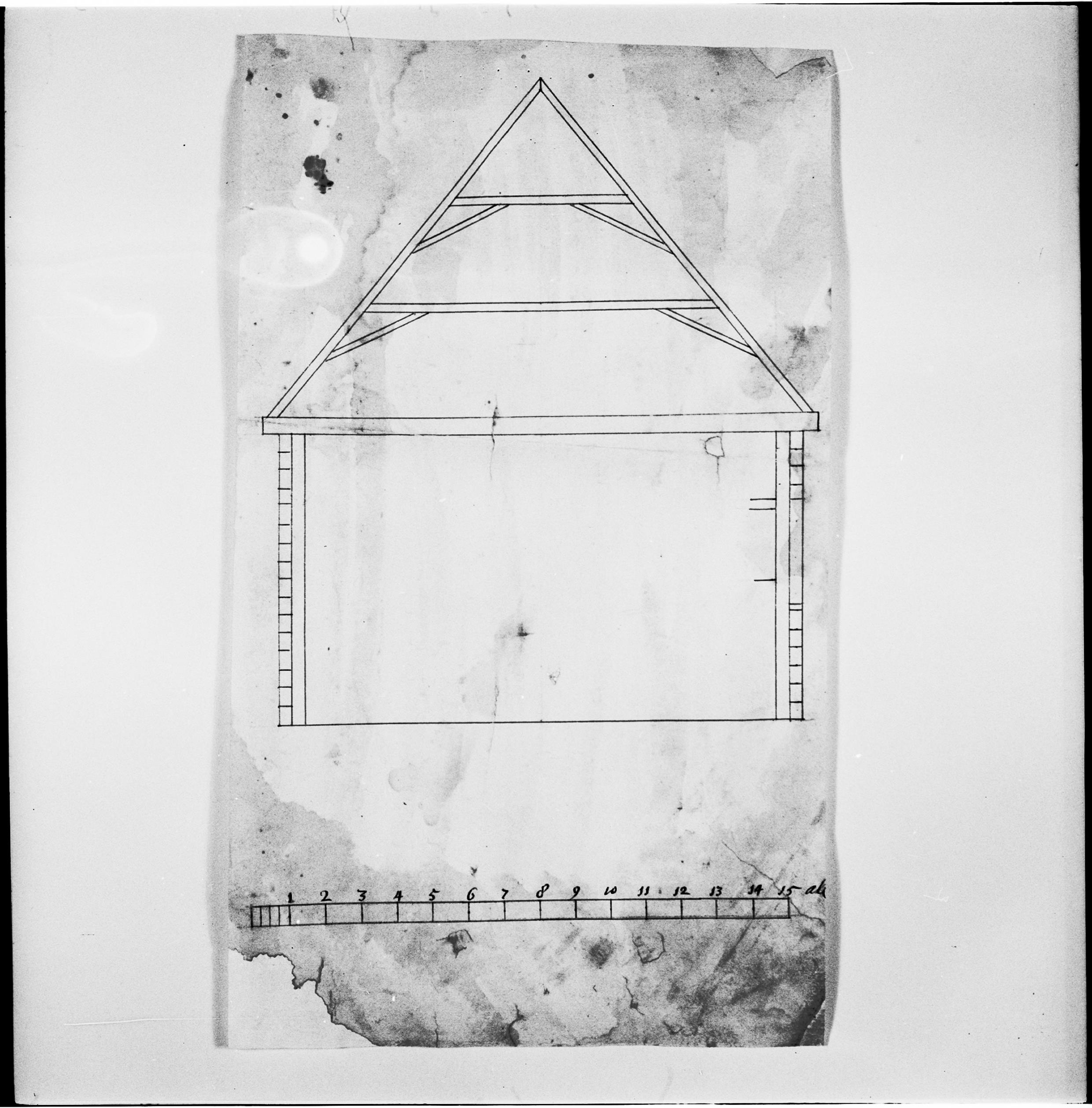 Ritning, plan till förändring av gamla kyrkan, omkring 1694, avfotograferad, original i Forsmarks kyrkoarkiv.