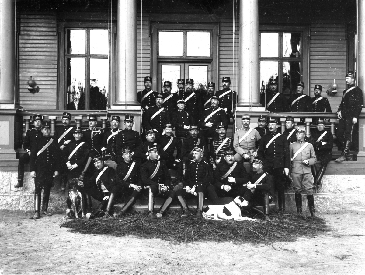 Titel: Officerare utanför officerspaviljonegen på Marma Hed.