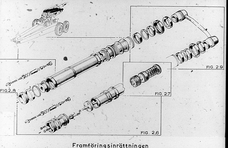 Haubits F. 15,5 cm. Detaljkatalog. Framföringsinrättningen.