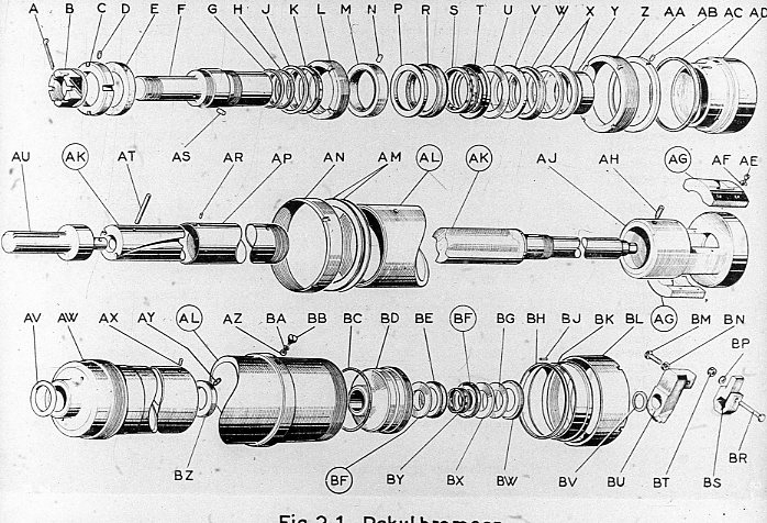 Haubits F. 15,5 cm. Detaljkatalog. Rekylbromsen.