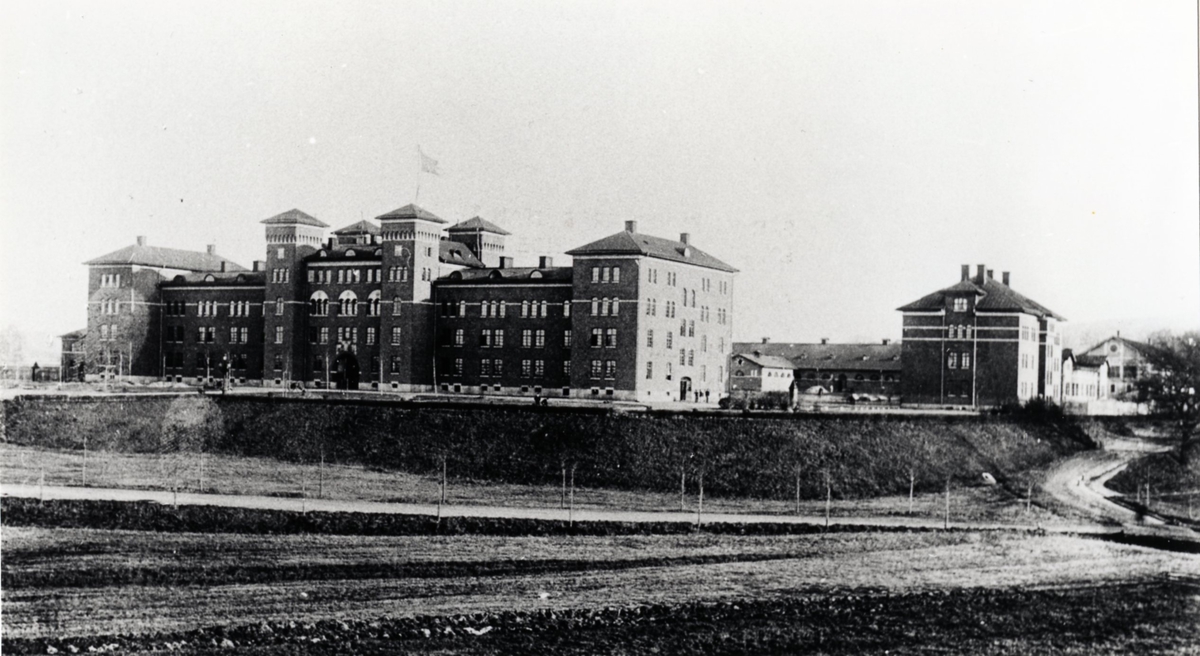 Titel: Kasern A6. Sedd från sydväst. Kasernen inte tillbyggd ännu.