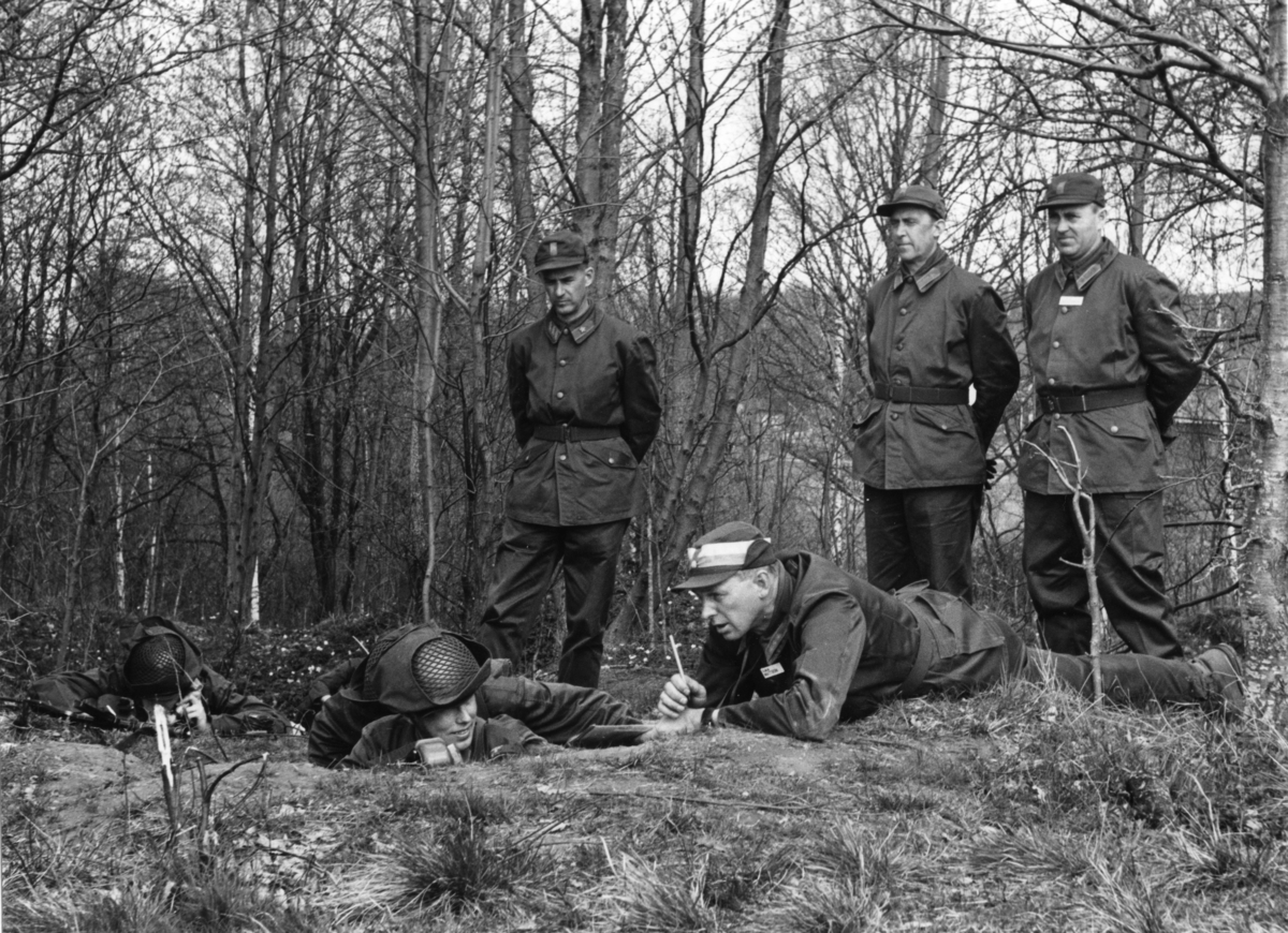 Inspektion, A 6. Militärbefälhavaren inspekterar. Namn se notering.