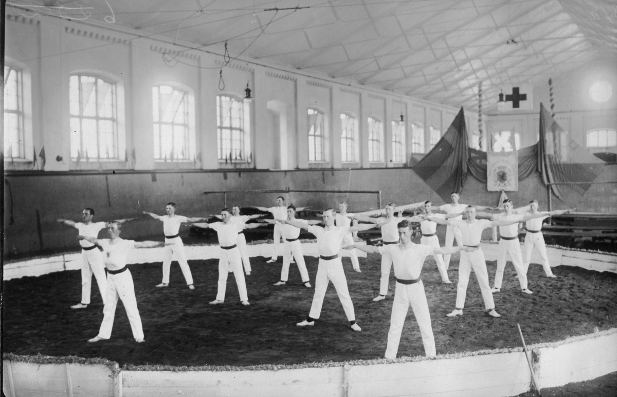 Röda Kors-fest, gymnastik. A 6. Ridhuset, nuvarande museet.
