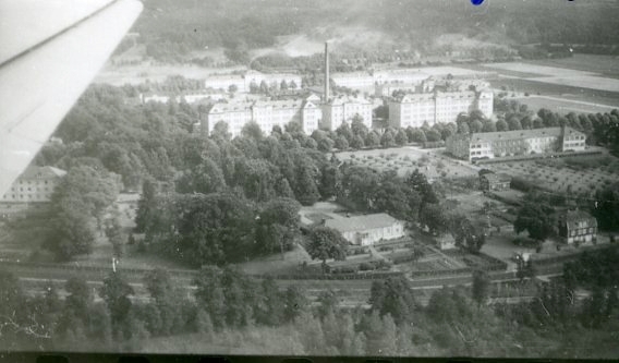 Flygfoto över fd I 12 kaserner, taget från tidningsplanet.