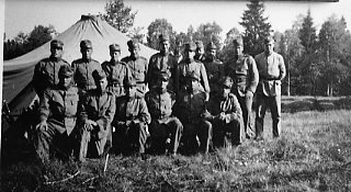 Soldater vid förläggningstält. I. eller II. kårdivisionen, A 6.