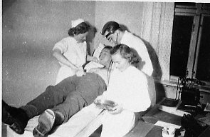 Titel: Sjukvårdsbaracken i Skillingaryd. Till höger: sjuvårdsbiträde Claesson.