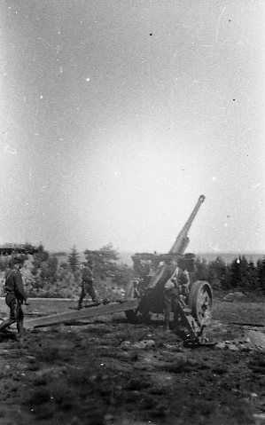 Kanon m/1934. 10,5 cm. Skjutning mot sjömål.