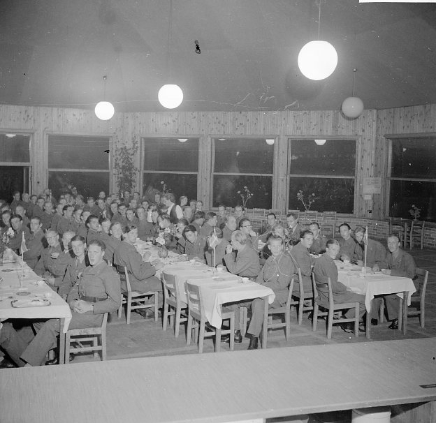 Marketenteriet, A 6. Interiör. 2 t.v. vid mittenbordet Allan Kohlstedt.