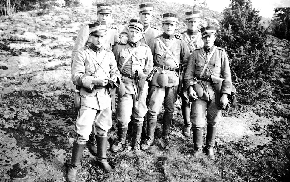Befälselever som övningstrupp. Med signalpistoler.
