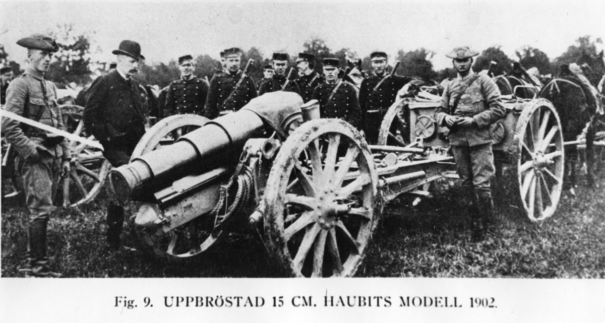 Titel: Haubits m/1902. 15 cm. Uppbröstad pjäs.
