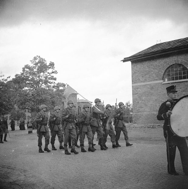 Titel: Förbimarsch för överste Årmann på kaserngården.