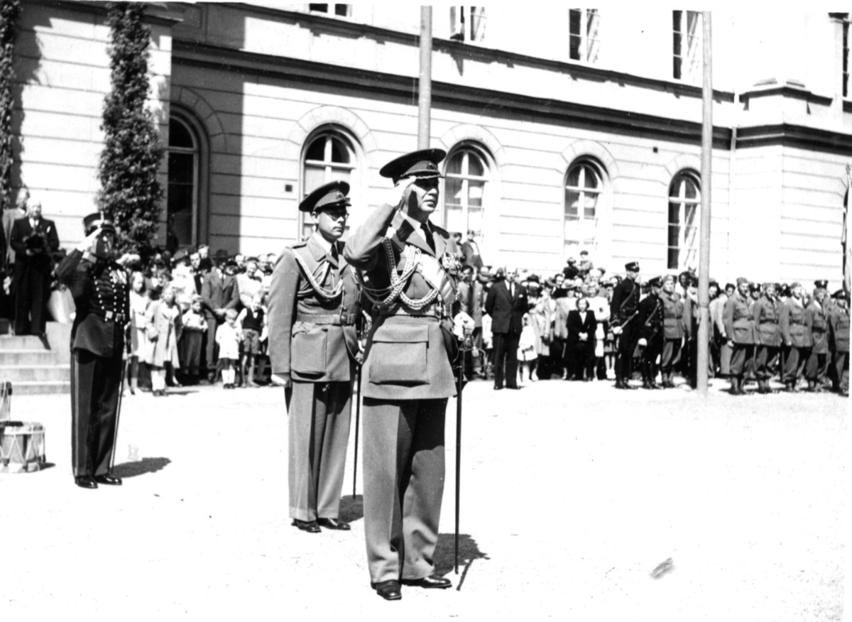 Titel: Jubileum 50 års, A 6. Chefen för armén, utanför rådhuset.