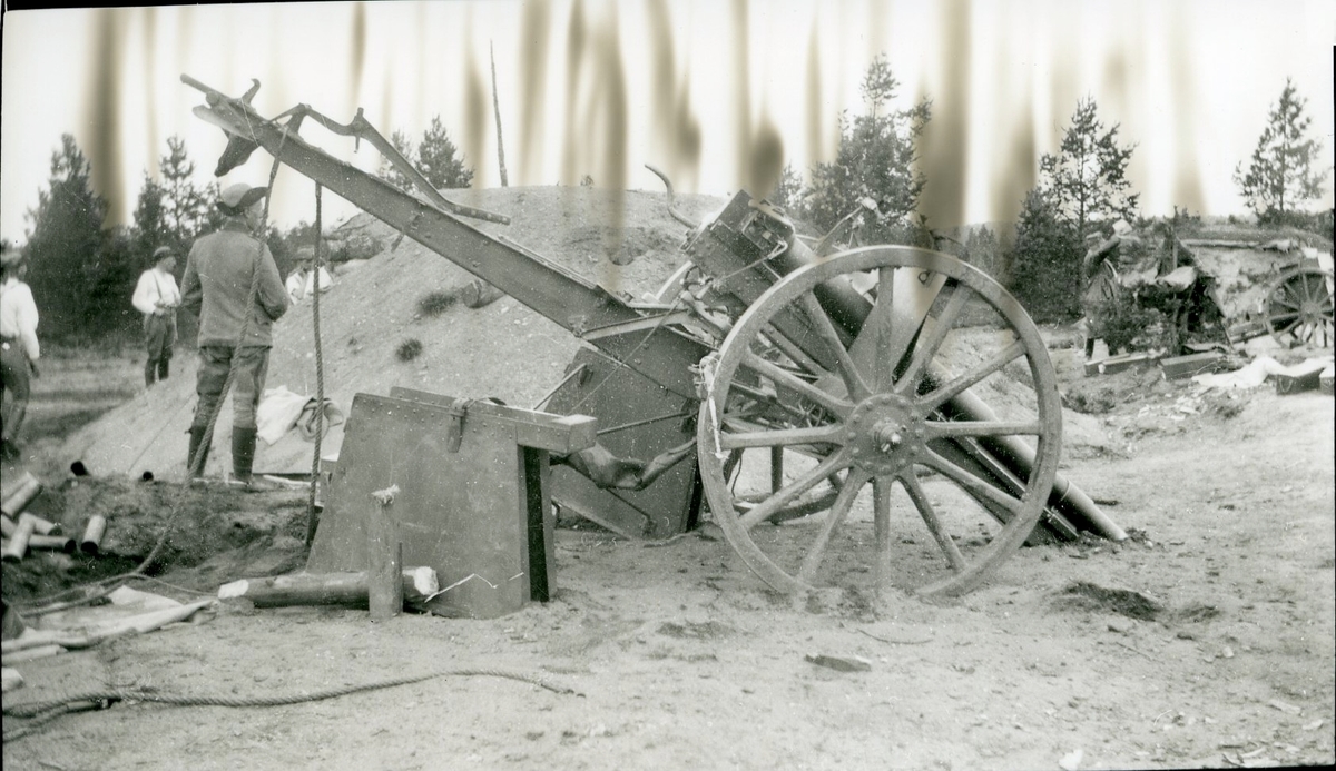 Kanon m/1902. 7,5 cm. Skjutning på bockar.
