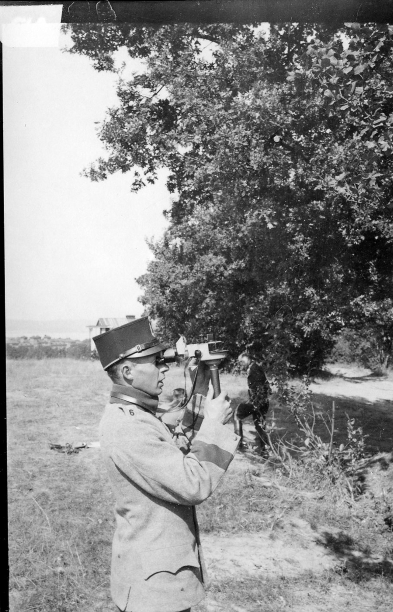 Suneson, furir, A 6, prövar frihandsvinkelmätning.