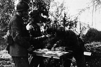 Batteriplatsavdelning i arbete. IV kårdivisionen.