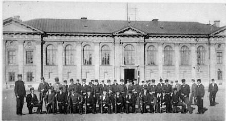 Skarpskyttar, utanför läroverkets gymnastiksal. A 6.