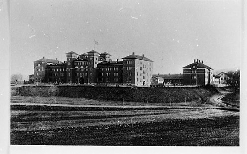 Titel: Kasern A 6. Sedd från sydväst. Kasernen inte tillbyggd ännu.