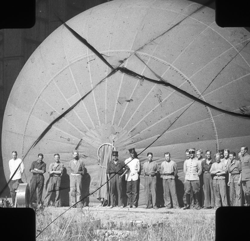 Titel: Kulballong m/1930. Dörröppningen på ballonghallen. A 6.