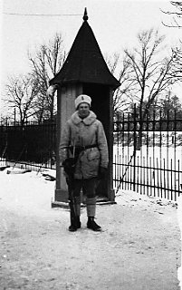Pettersson, vpl. På vakt vid postkuren, kasernvakten, A 6. Vinter.
