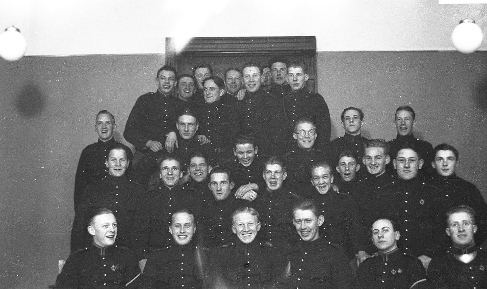 Värnpliktiga i kasern. Erik Sandstedt tvåa från höger.