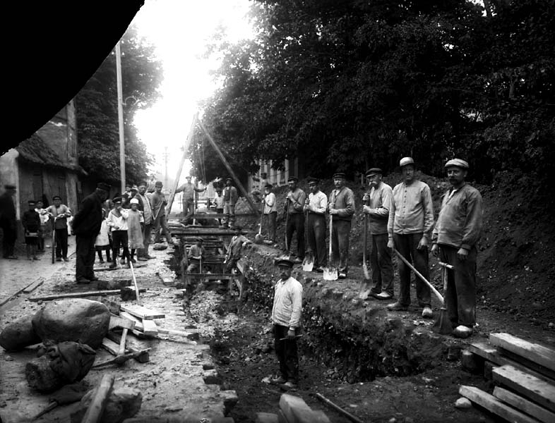 Gatuarbete på Östergatan. Ska man lägga vattenrör eller kanske avloppsledning? Till vänster Kocks handelsbod.