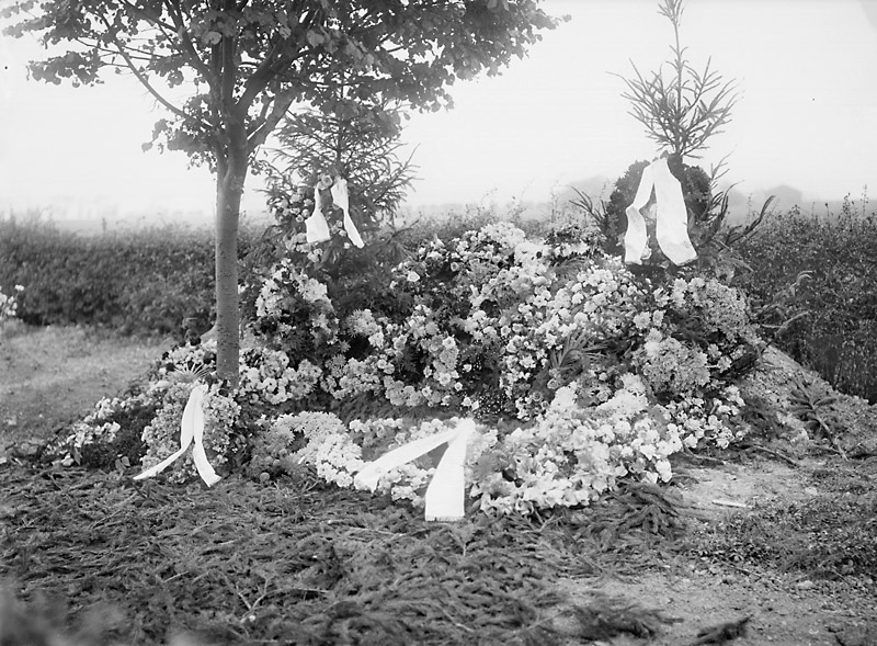 Grav med en mängd kransar och blommor. Konsul Eruth?