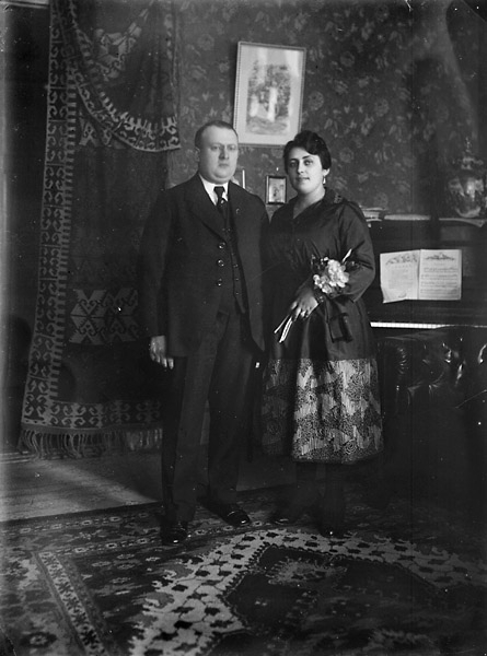 Man och kvinna i hemmiljö. Brudpar? Samma personer som på bild ETB 1088.
