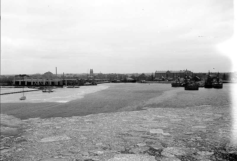 Hamnen. Mitt i bilden syns kyrkan, till höger Ångkvarnen.