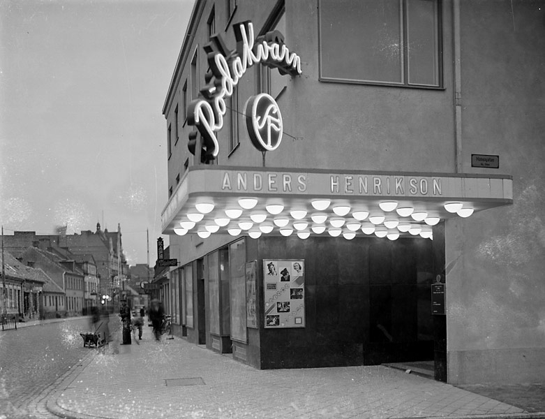 Röda Kvarn. Exteriör biograf Röda kvarn, korsningen Algatan-Hansagatan.