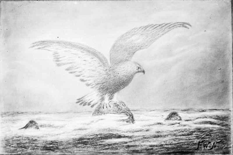 Teckning av en örn. Bilden är gjord av Ferdrik Waldemar Nilsson.