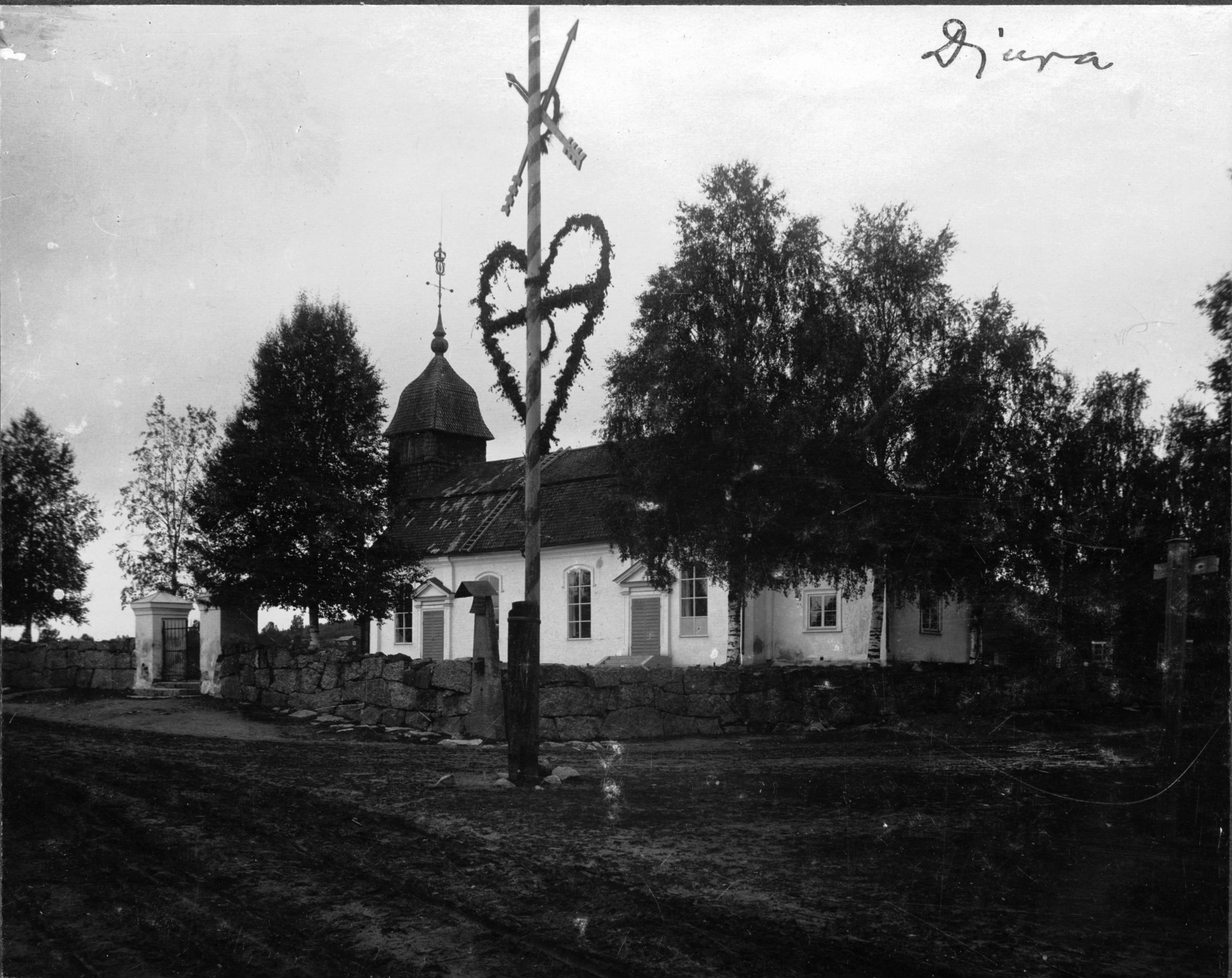 Kyrkan från sydöst, med majstång.