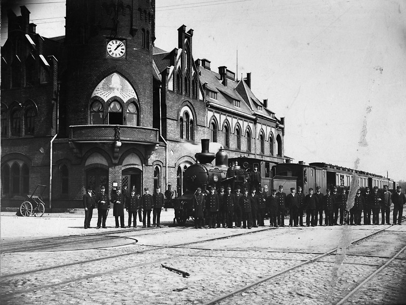 Uppställning framför persontåg
