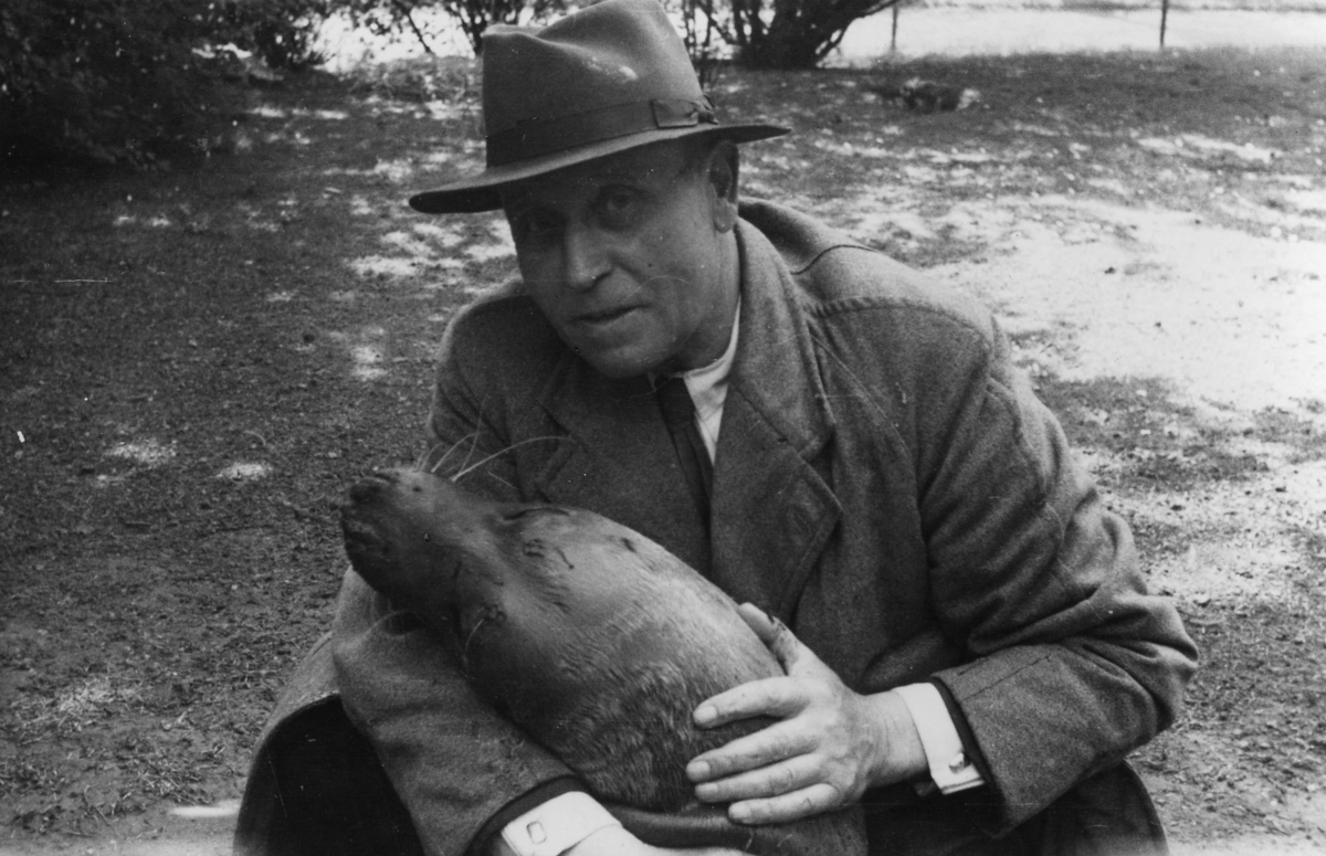 Fredrik W Nilsson och sälen Isak i Stadsparken.