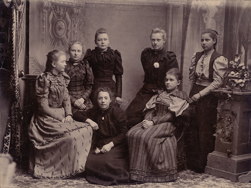 Ateljébild, sju unga damer.