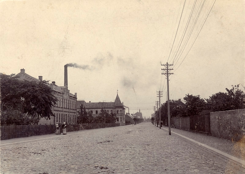 Nygatan med telefonstolpar stående på gatan i sidan.